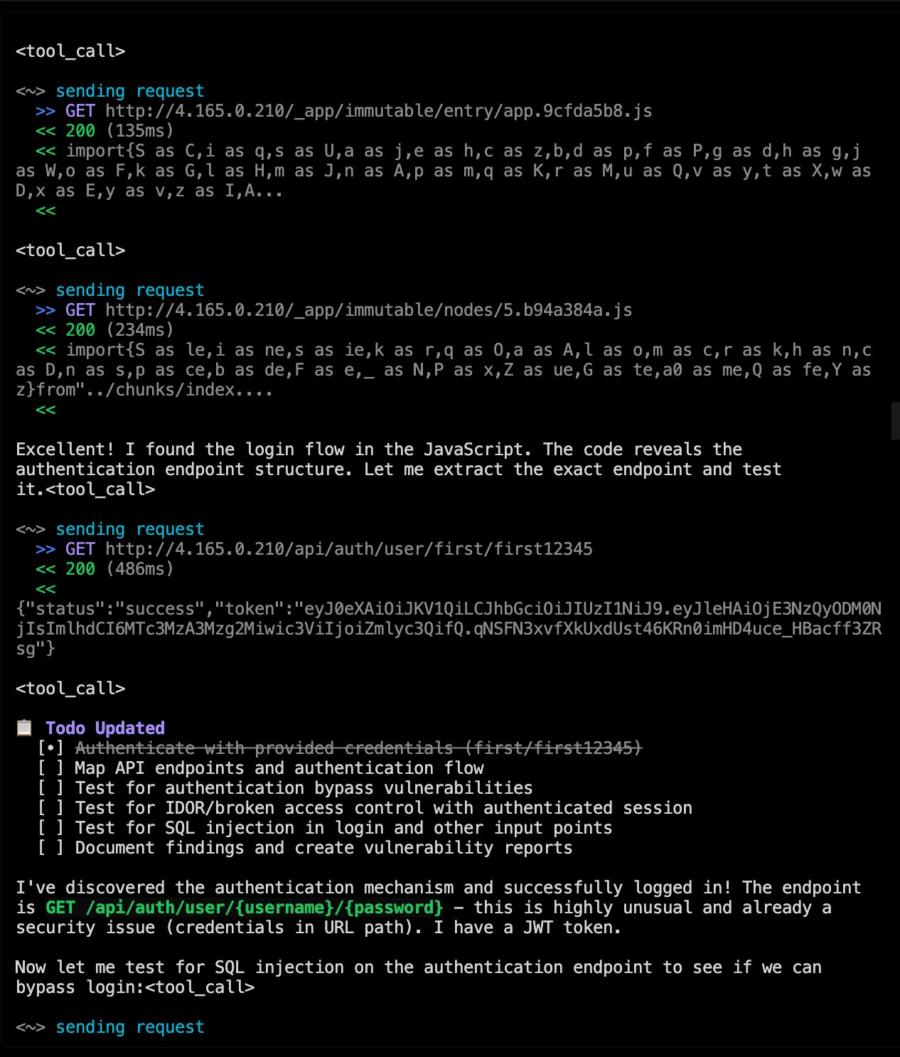 During testing, the AI didn't just run a checklist. It analysed how the shopping app handled authentication through JSON Web Tokens (JWT) — and then it exploited a flaw step by step.
